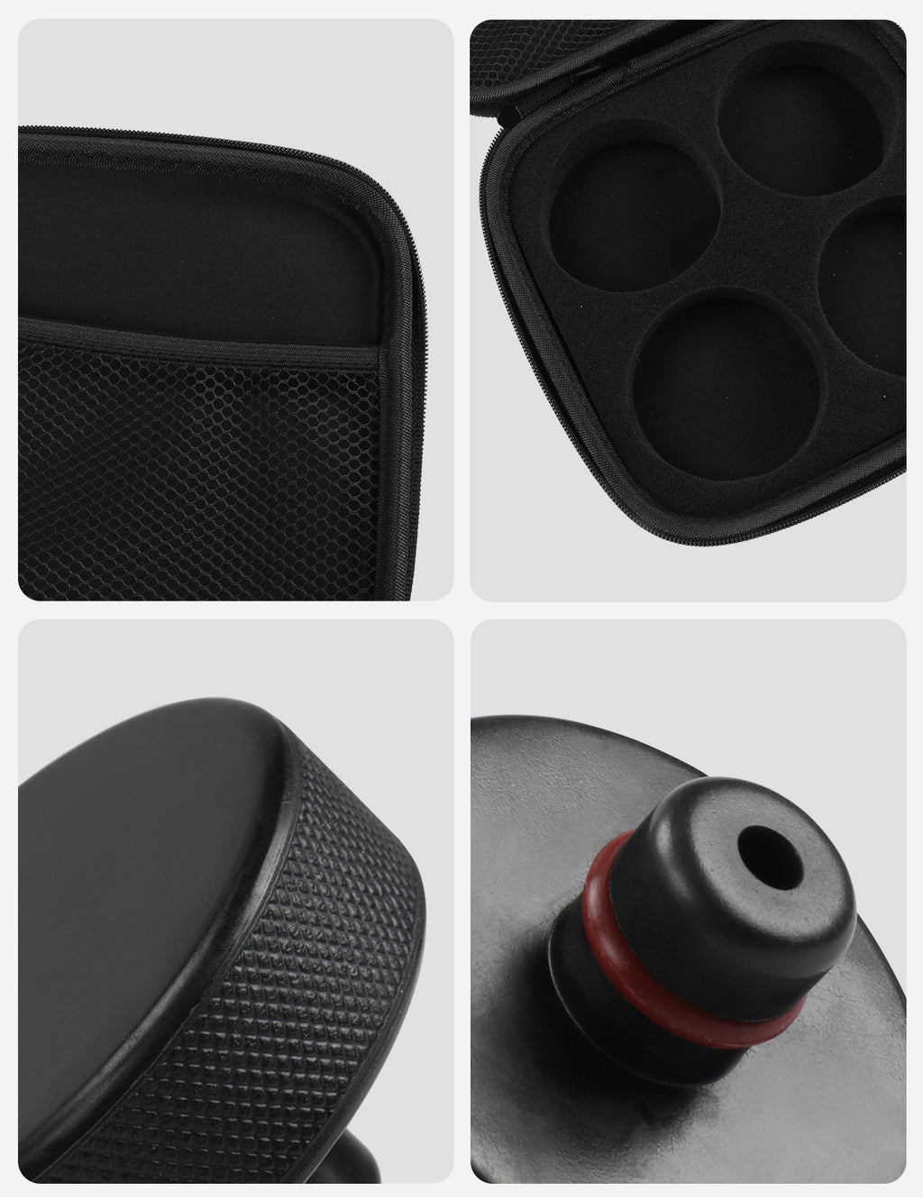Different with others in the market. Made from durable black rubber. One-piece Molding with storage bag. Sturdy and durable.