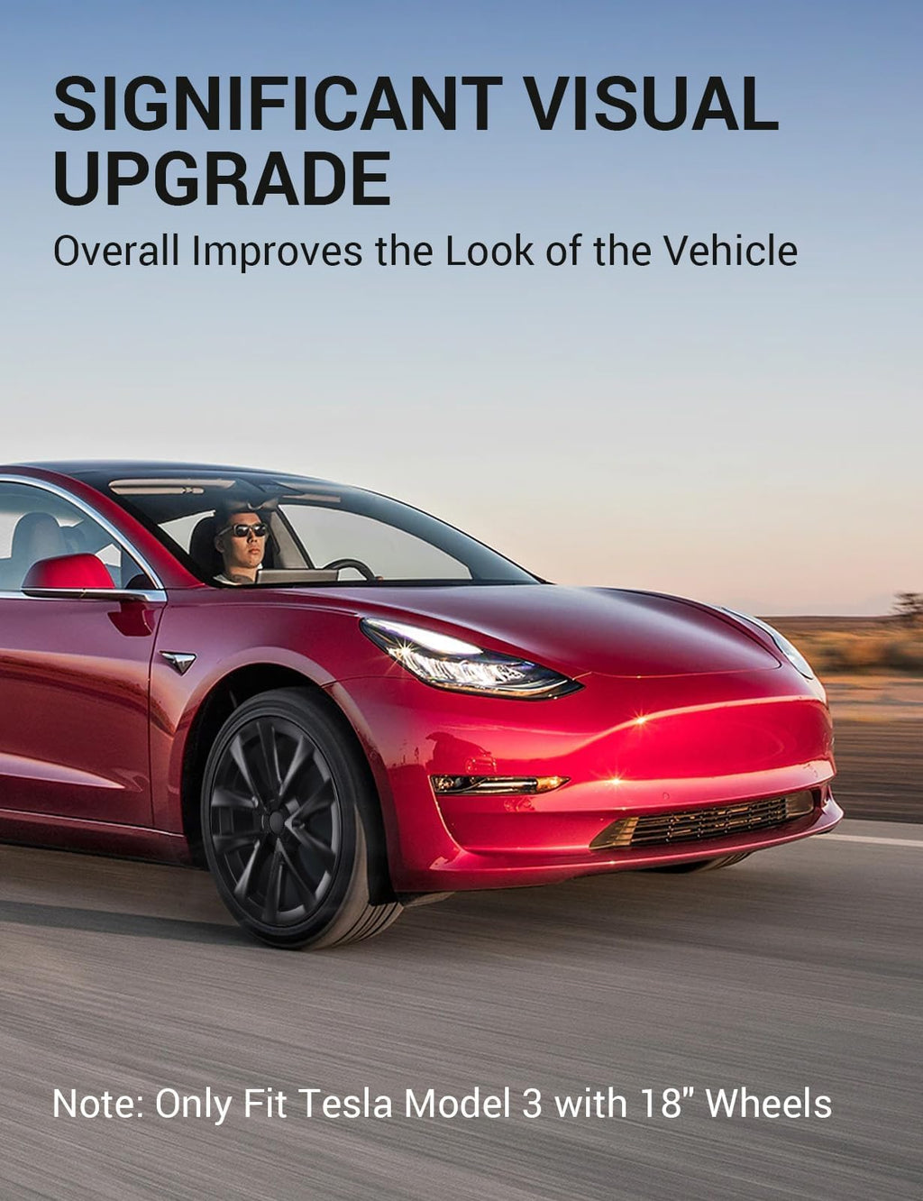 - Striking Visual Enhancement: Experience the allure of fully covered Tesla wheel caps, eliminating any visual discrepancies. Embrace a sportier look with the turbo design, and personalize your Model 3 with a complimentary wheel center emblem sticker available in black, white, and red. Stand out from the crowd.