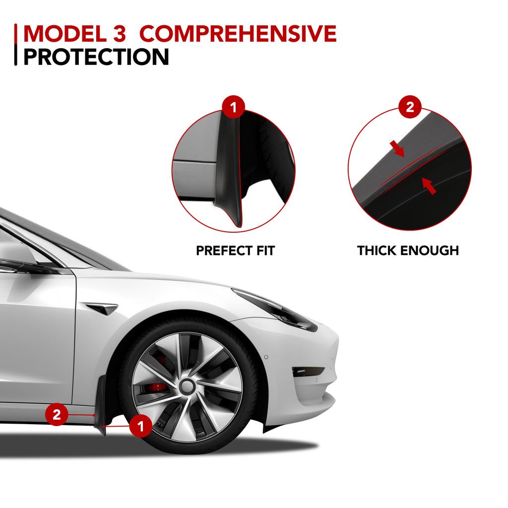 - Great Protector: The Mud Flaps protect the lower portions of your Model 3 from snow, salt, sand, rocks and other debris your wheels throw around.