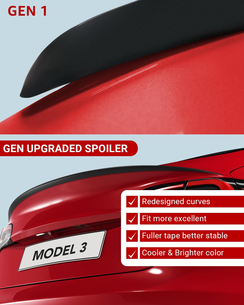 - Perfect Fit - BASENOR Car Spoiler is specifically designed for the 2017-2023 Tesla Model 3 and is meticulously designed using a 1:1 modeling approach, creating a perfect fit with Tesla