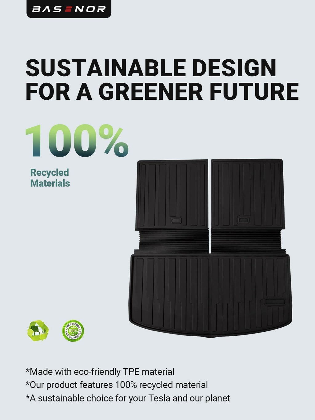- 🌱 CERTIFIED SUSTAINABLE: Incredible Custom-design Loved by 500,000+ Tesla Owners. BASENOR Tesla Model Y trunk mat is expertly tailored for the 7-seater Model Y (2020 2021 2022 2023 2024), ensuring an impeccable fit while showcasing its exclusivity – Note: not suitable for the 5-seater Model Y.