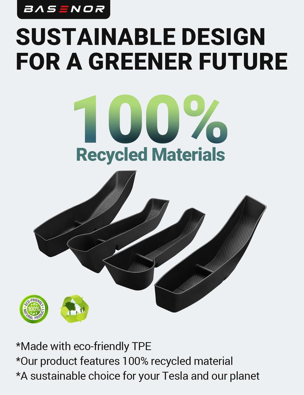 - Premium Material: The Tesla Model Y door storage compartment is crafted with a newly upgraded TPE material. This material not only provides resistance against wear and scratches but is also non-toxic odorless, and eco-friendly. Store your belongings with peace of mind, contributing to a sustainable future