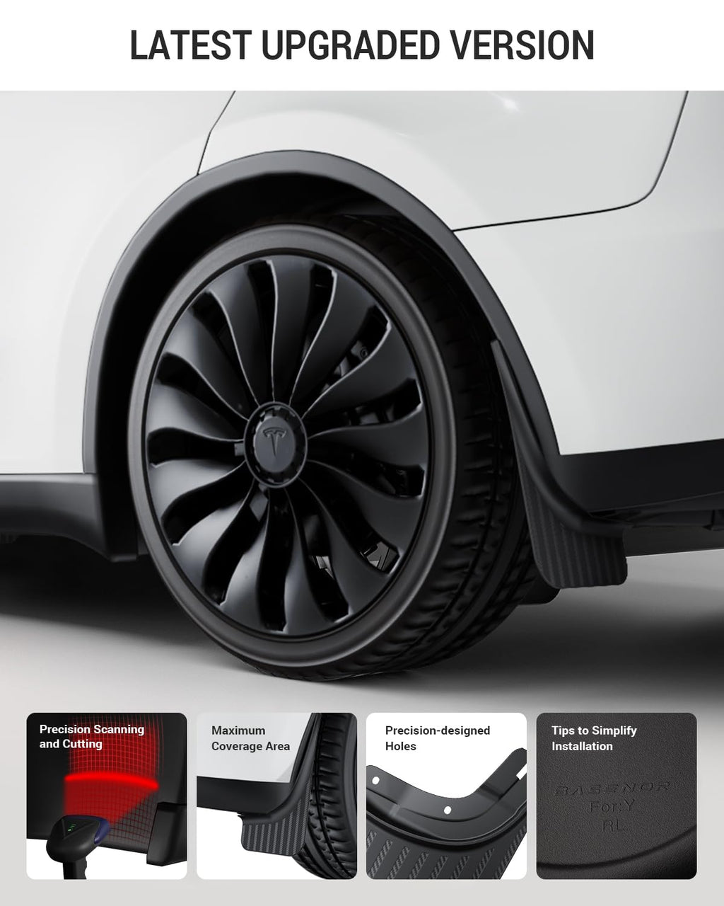 - Custom Design: Loved by over 500,000 Tesla owners, BASENOR's patented Tesla Model Y mud flaps are designed for superior protection and a perfect fit on Model Y 2020-2024. With a wider coverage range than the competition, these mud flaps provide maximum protection against road debris. Please note: The correct mounting position is at the rear of the wheel