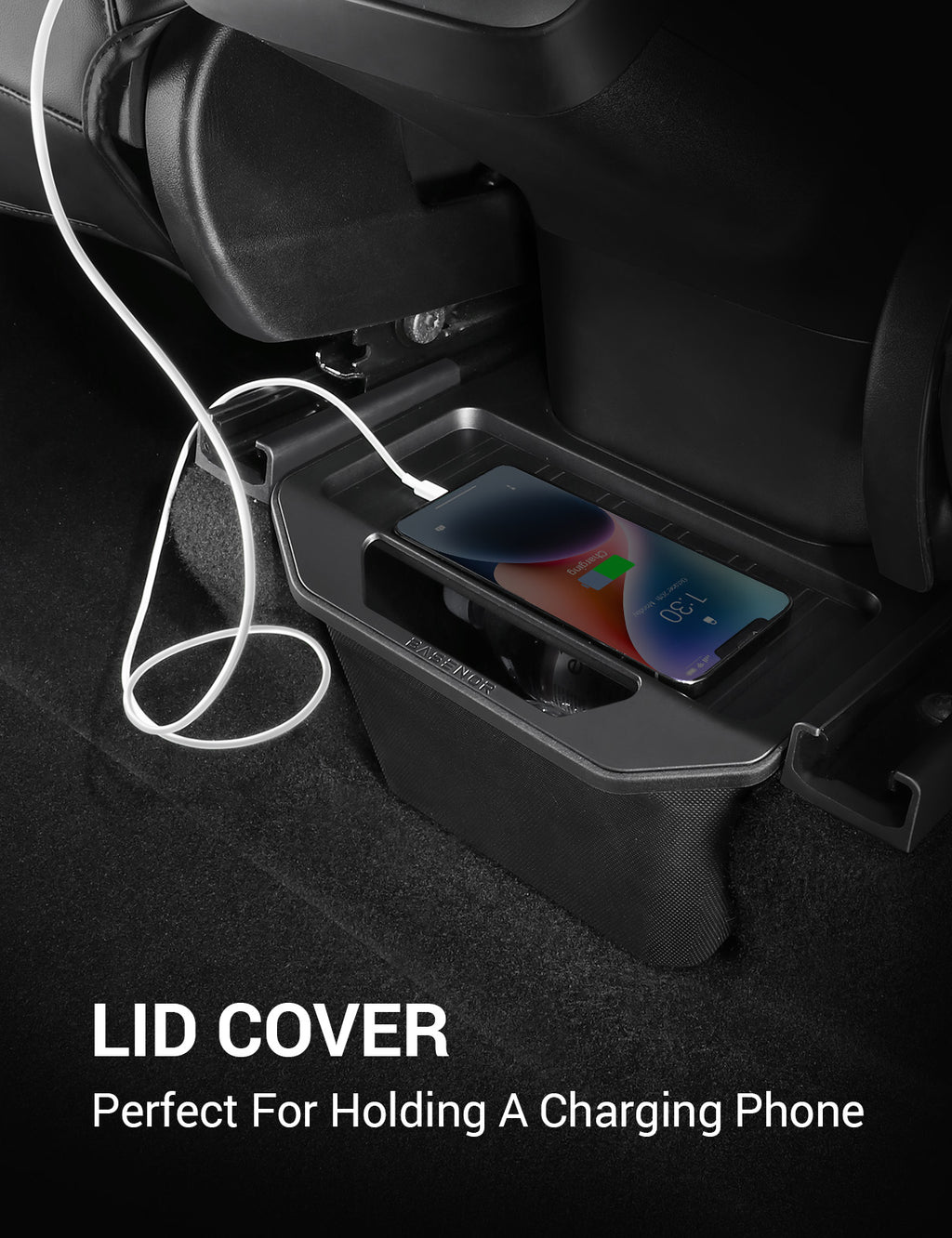 - Enhanced Storage Capabilities: Experience the versatility of the Model Y backseat organizer. Effortlessly store water cups, mobile phones, and other essentials while preventing items from rolling on the back seat. Anti-slip cover perfect for holding a charging phone.