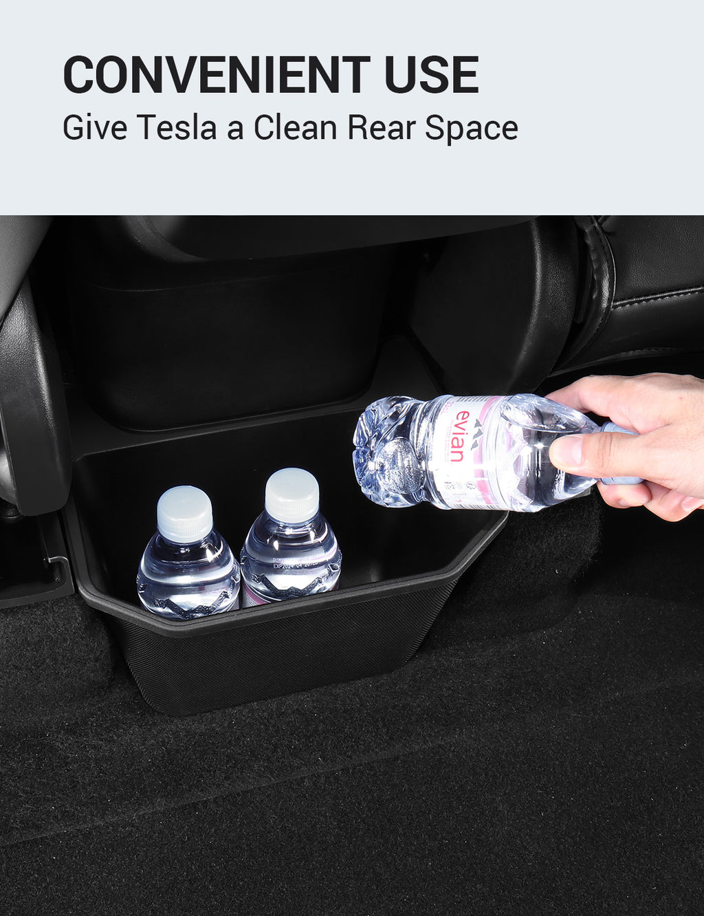 - Seamless Integration: Model Y rear storage bin cubby flawlessly nestles under the Model Y's rear exhaust port, boasting a gap-free design that won't impact floormat functionality.