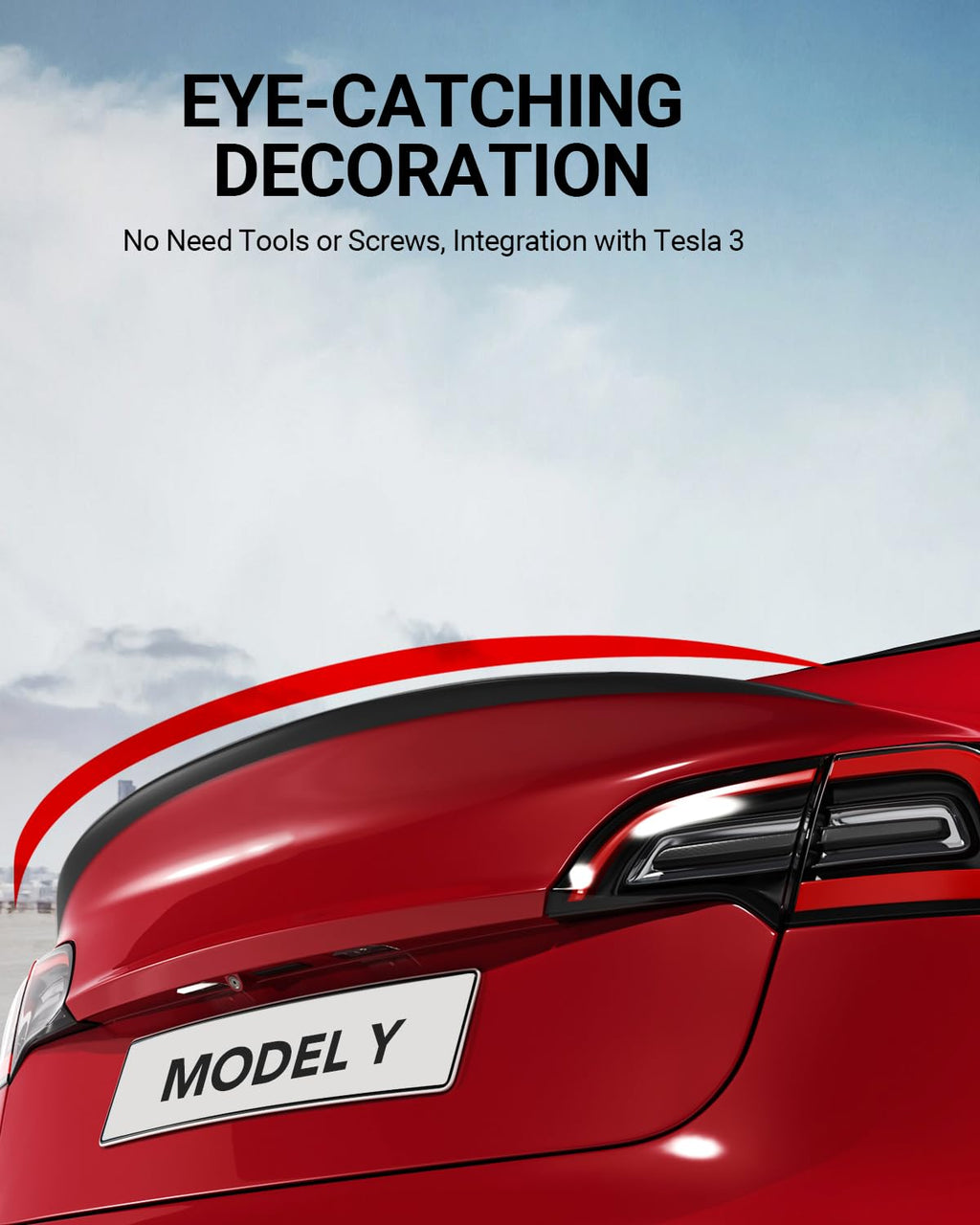 - Improved Stability: The Model Y spoiler's sleek and stylish design not only enhances the vehicle's appearance but also improves stability at higher speeds. It helps to minimize lift, providing better traction and control, especially during cornering and highway driving.
