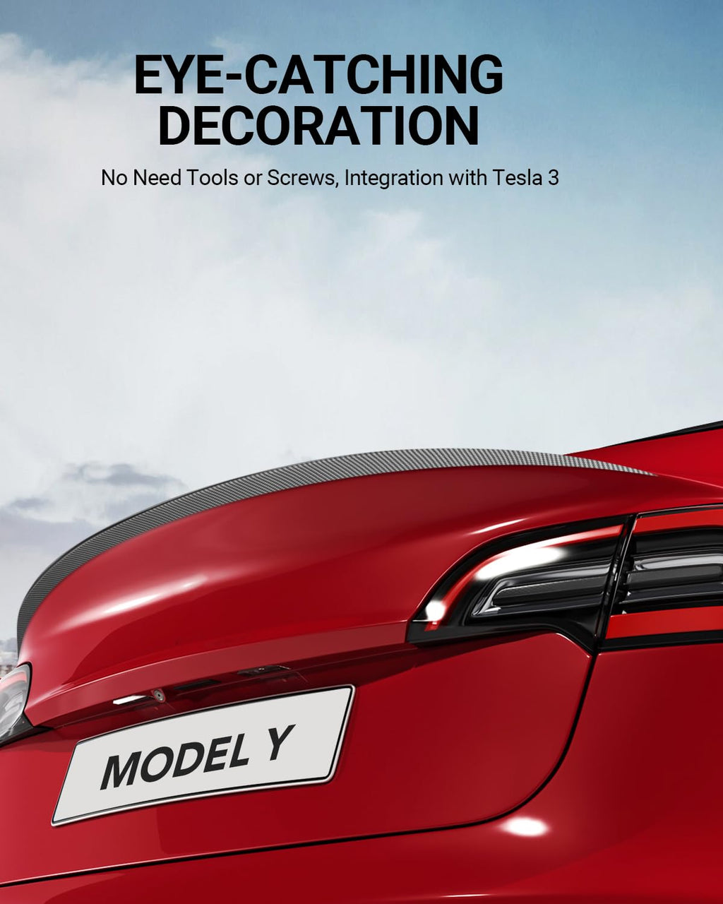 - Improved Stability: The Model Y spoiler's sleek and stylish design not only enhances the vehicle's appearance but also improves stability at higher speeds. It helps to minimize lift, providing better traction and control, especially during cornering and highway driving.