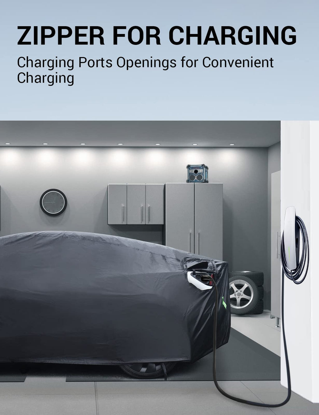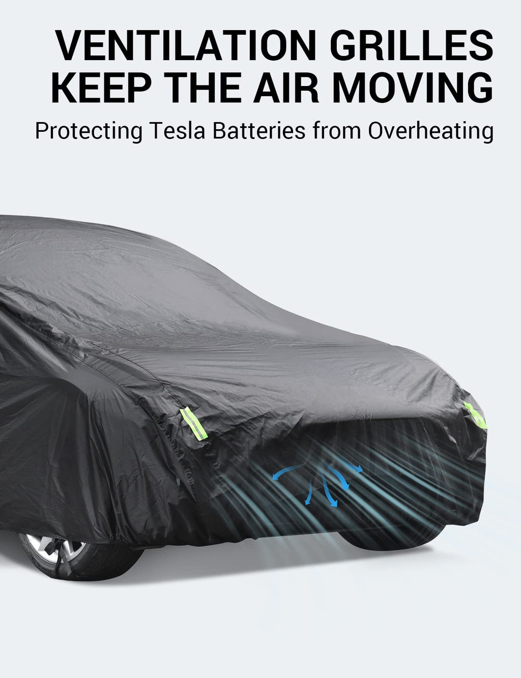 - Ventilation Grille & Charging Convenience: The ventilation grille ensures appropriate air circulation and battery conditioning, safeguarding your Tesla's battery in hot conditions. Easily charge your Model Y through the convenient zipper opening at the charging port, without removing the Tesla Model Y car cover.