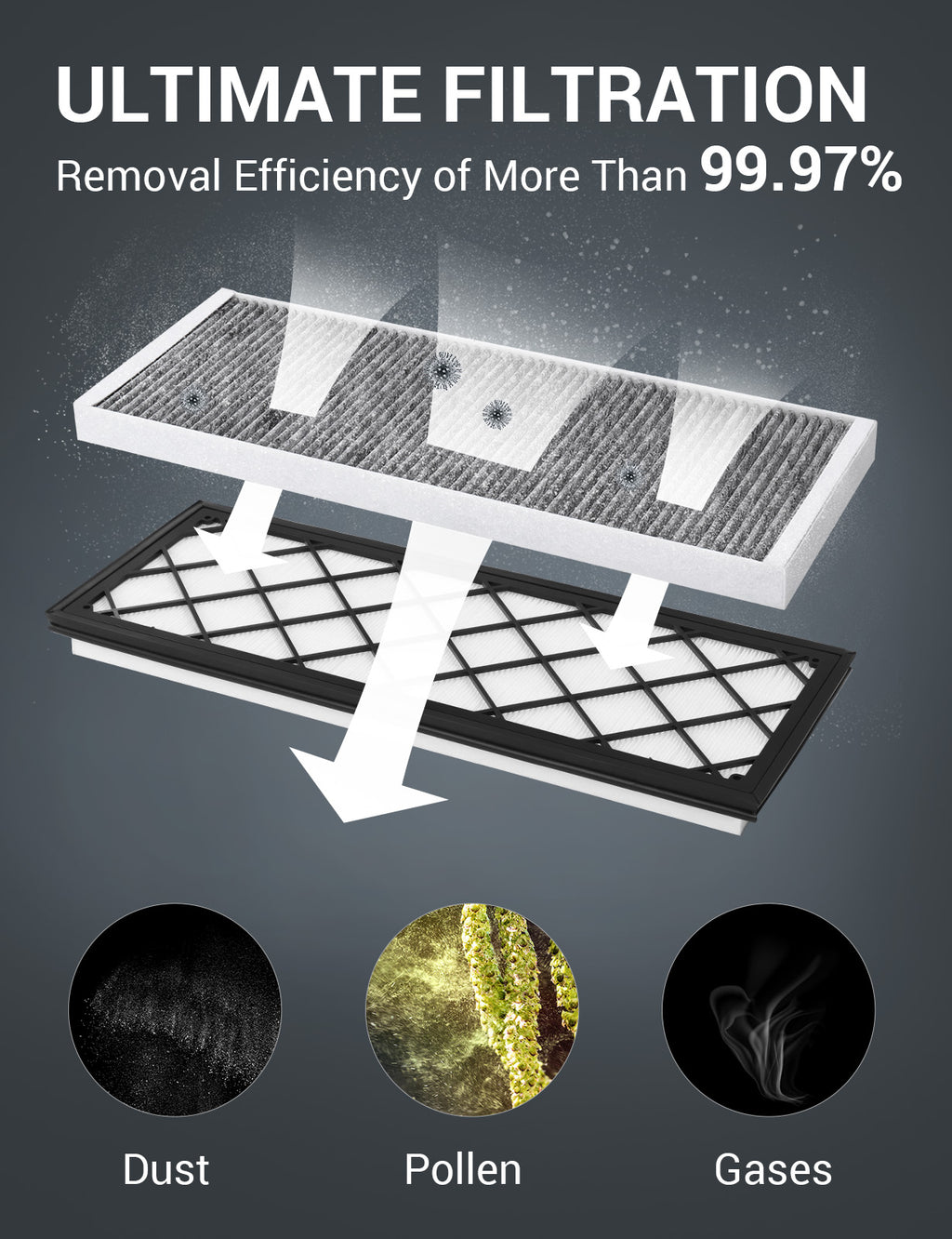 - Ultimate Filtration: Tesla Model Y cabin air filter additionally uses globally recognized HEPA filter material, which has an efficiency of more than 99.97% for particles above 0.3 microns, and can filter out tiny particles, dust, odors, etc. from the external air intake, keeping your cabin air clean.