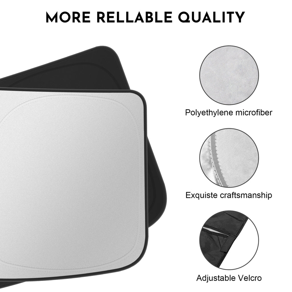 - 2-Layer Insulation: Unlike ordinary sunshades, ours features dual-layer protection: premium 210T reflective polyester plus a high-quality fabric lining. Double the insulation, double the defense against heat and sun.