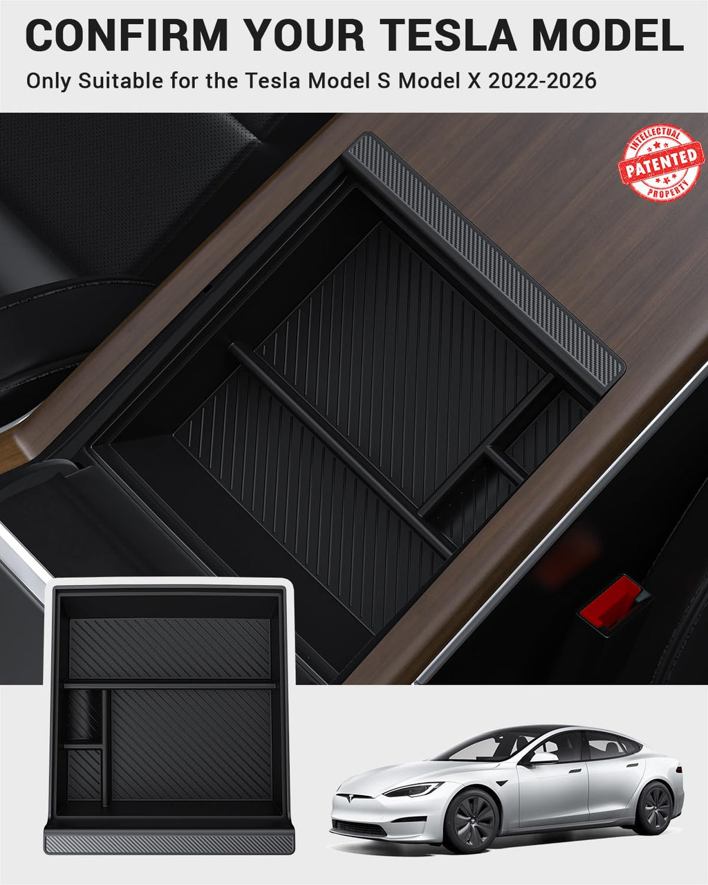 - 🌱 CERTIFIED SUSTAINABLE: Incredible Custom Design Loved by 500,000+ Tesla Owners. BASENOR patent design Tesla armrest console organizer is specifically tailored for the 2022-2026 Tesla Model S/Model S Plaid/Long Range and Model X/X Plaid/Long Range, guaranteeing seamless integration and a 100% fit that easily to slide without disrupting regular armrest usage
