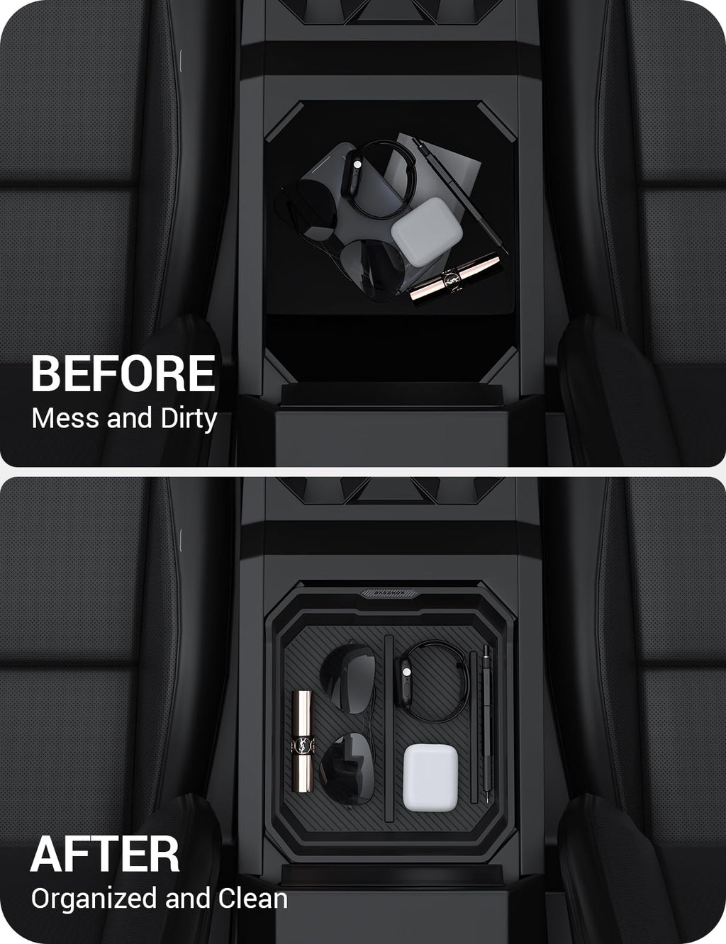 - Custom-Designed: Incredible Custom-design Loved by 500,000+ Tesla Owners. BASENOR patented design for the Tesla center console box is specifically tailored for the 2024 2025 Cybertruck. Utilizing 3D scans of original vehicle data, it fits the armrest box perfectly