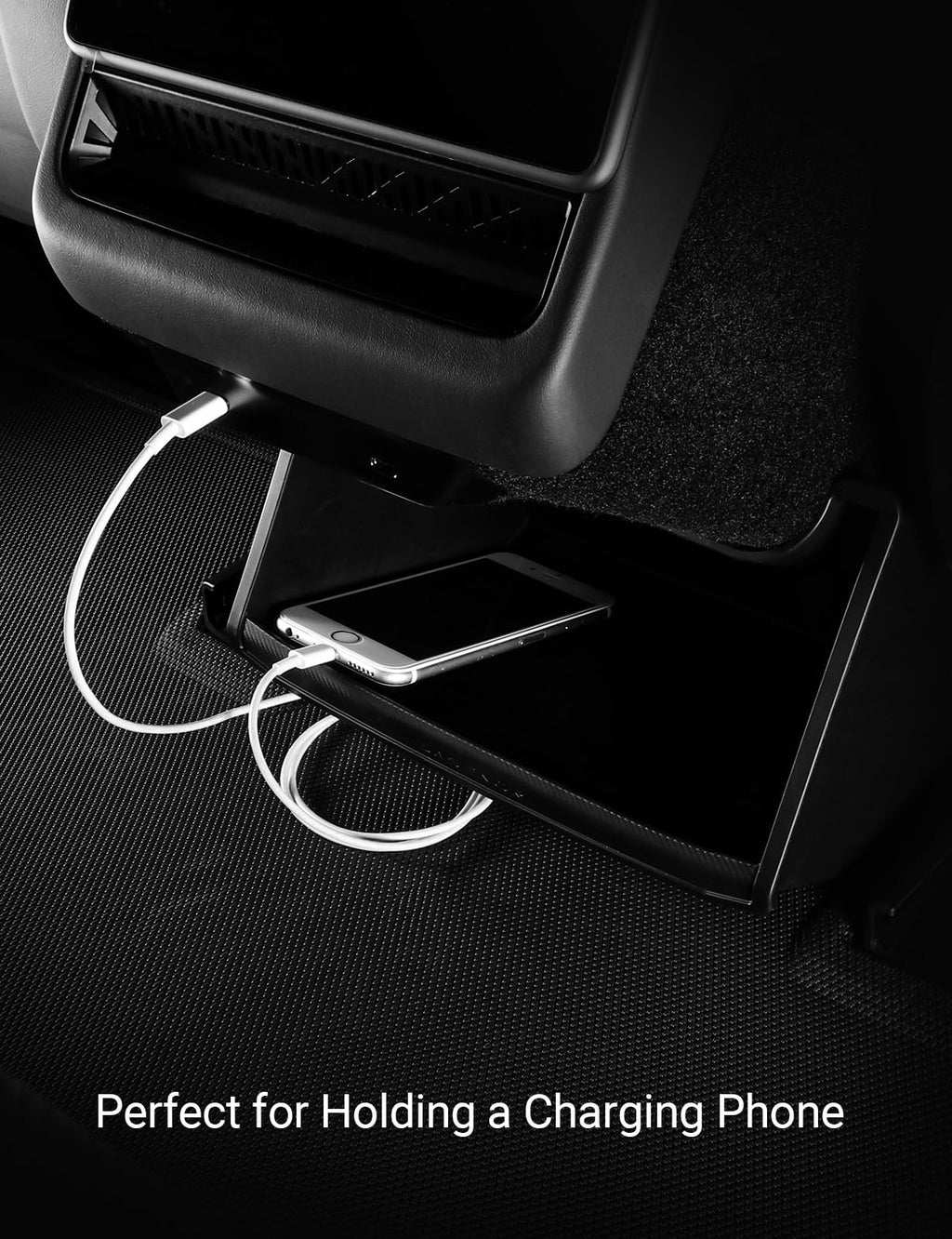 2. Savor Ample Legroom: Unlike other models that protrude, our rear organizer is designed to be flush with the rear seating area, ensuring no disruption to the spacious legroom your passengers expect. This innovative design preserves the comfort of your Tesla’s interior while offering expanded storage capacity for everyday essentials like water bottles, phones, and more—without compromising passenger comfort