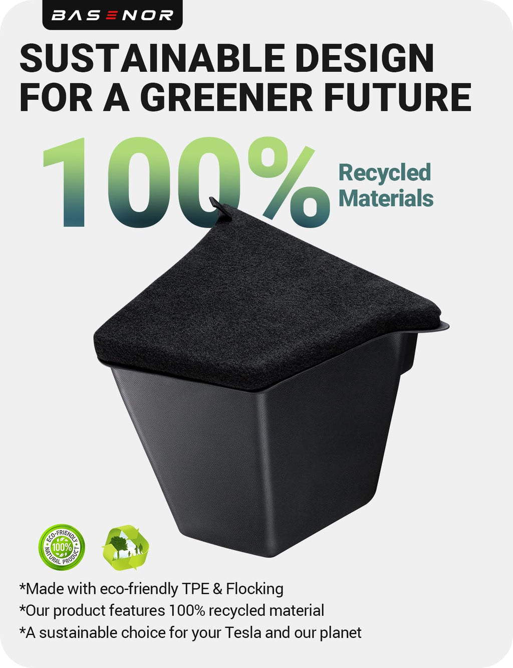 1. 🌱 CERTIFIED SUSTAINABLE (Proprietary Design): Loved by over 500,000 Tesla users. BASENOR Tesla Model Y trunk organizer is highly precise, molded in a 1:1 vehicle mold, with curves that fit perfectly, matching 100% with the 2025 2026 Model Y car on all four sides and the bottom