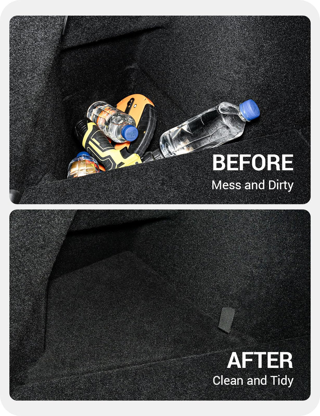 5. 1-Second Installation: Drop in and ready to use, without requiring extra tools or steps. This Tesla Y Trunk Storage Bin features plush material identical to the original carpet, seamlessly blending with the trunk after installation, expanded floor space and cargo area