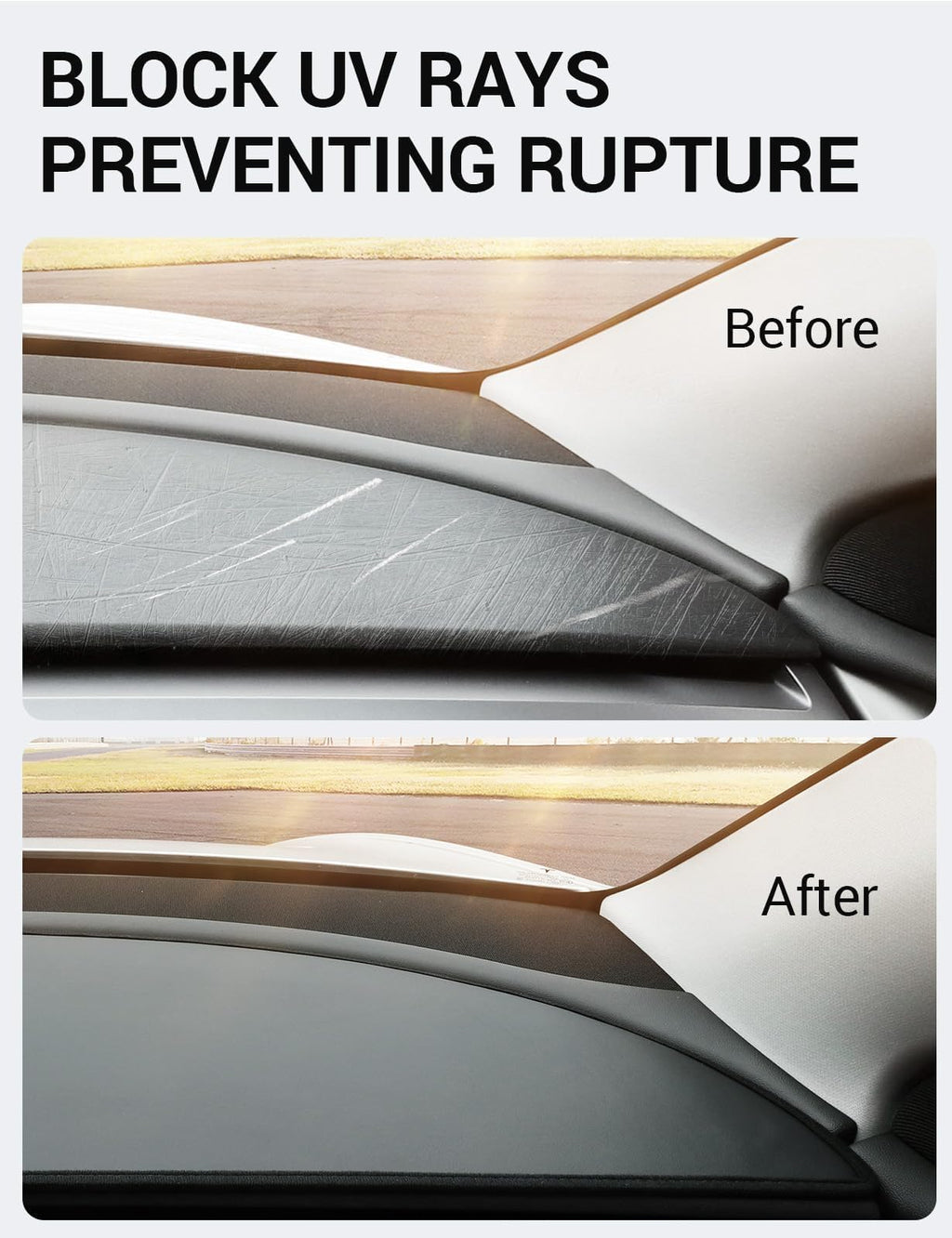 - Comprehensive Protection: Safeguard your Tesla Model Y dashboard from dust, wear, scratches, UV rays, and damage with the all-encompassing dash cover. This premium cover offers long-lasting protection and heightened safety, ensuring an unobstructed and focused view by effectively minimizing glare and reflections. It acts as a shield against dashboard cracking caused by prolonged exposure to sunlight, guaranteeing the longevity of your dashboard.