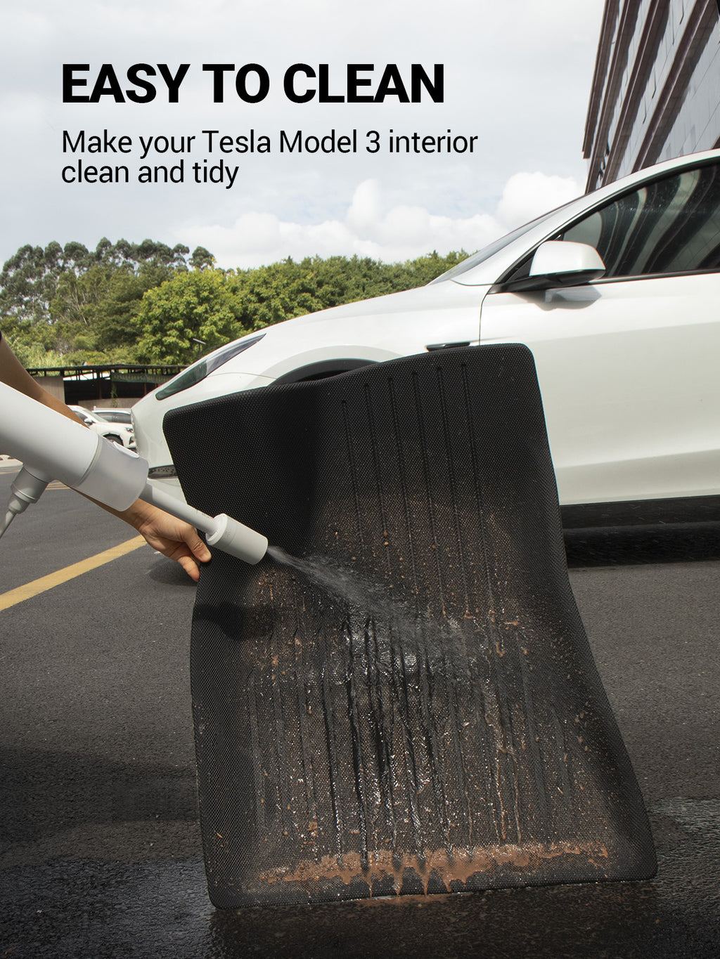 - All-weather Protection Mats: Waterproof and stain-resistant. The Polyester looped fabric surface captures sand, mud, snow, and dirt to protect your Tesla Model 3 floors in different weather of the year. Easily cleaned without leaving any dirt.