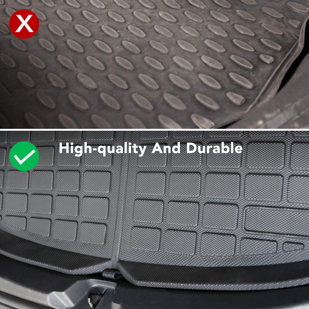 - Premium Material: Unlike other rear trunk floor mats with cheap material. The model 3 cargo mat with eco-friendly TPE. Non-toxic and odorless. Revolutionary interior protection for your Tesla Model 3.