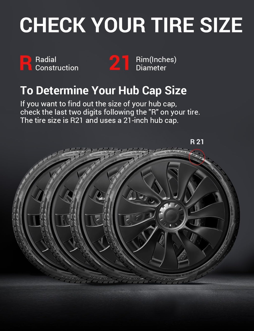 - Striking Visual Enhancement: The Tesla Model Y 21" rim hubcap cover adds a sense of style and sophistication to the appearance of the Model Y which eliminates any visual discrepancies. Its sleek design and clean lines enhance the overall aesthetics of the vehicle, making your Model Y stand out.