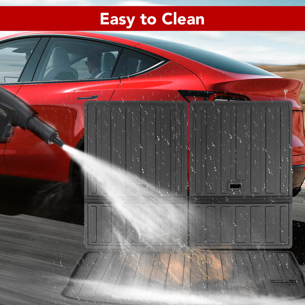 - All-weather Protection: Tesla Model y 7-seater trunk mat with backrest mats, is waterproof, stain-proof, scratch-resistant, dust-proof, and easy to clean.