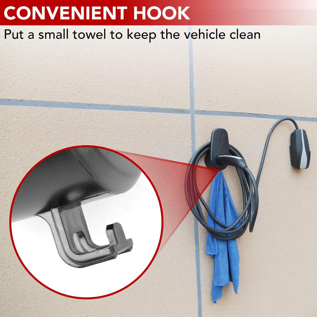 - Convenient Configuration: An extra bracket is provided to fix the charger adapter, and it is equipped with high-quality screw mounting to prevent the adapter from being placed in nowhere. The base of the hanger also has a hook, which can hang some convenient small items.