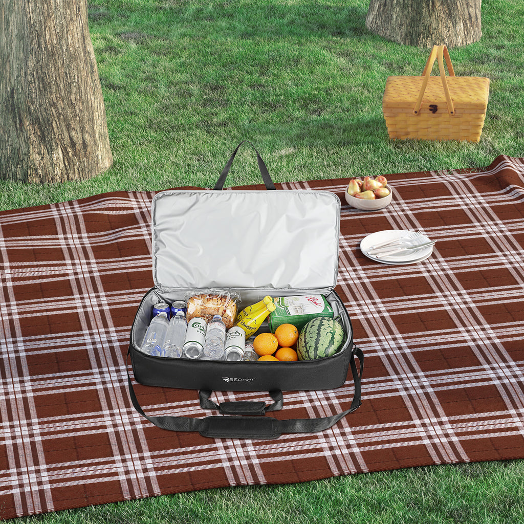 - Extra Pocket: The cooler bag's exterior with a zippered pocket and a net pocket. It can easily store anything from towels, can openers to utensils.
