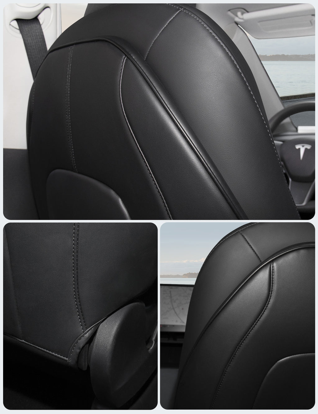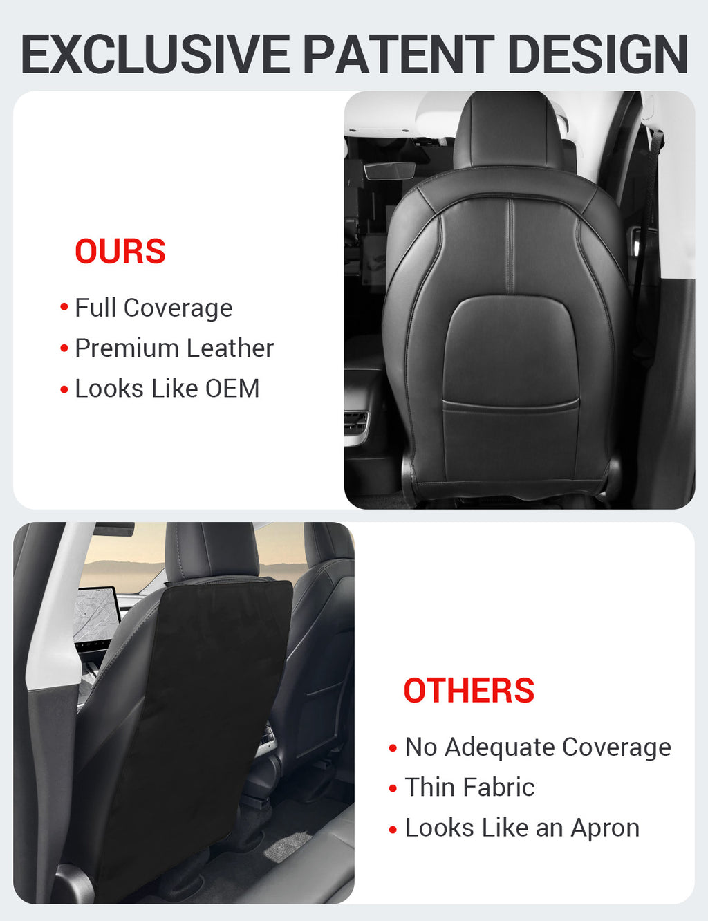 - Indulge in Luxury: Impeccably fashioned from premium PU leather, renowned for its opulent and enduring texture, our Tesla seat cover stands as a pinnacle of sophistication. Crafted with a 3-layered composite, it outshines all rivals with its waterproof, wear-resistant, and easy-to-clean properties but also enhances durability by an impressive 300%. Fully covering the seat back to safeguard your Tesla backseat from 100% dirt, mud, and scuff marks, a perfect choice for families with children