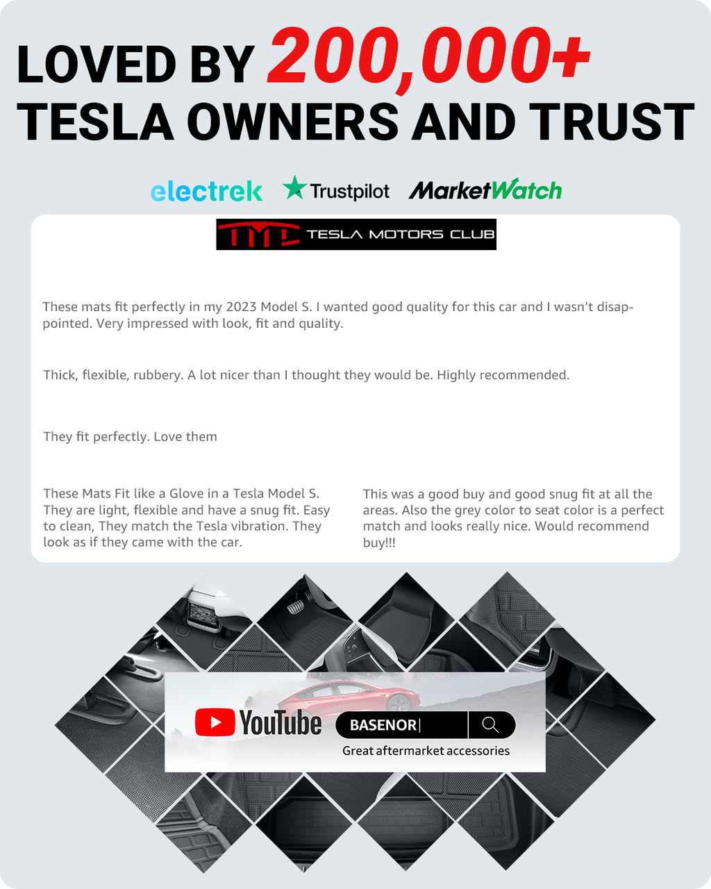 - Innovative Design: BASENOR Floor Liners Set have passed a variety of extreme tests to ensure that they will not crack, split or deform. Excellent accessories for Tesla Model S.